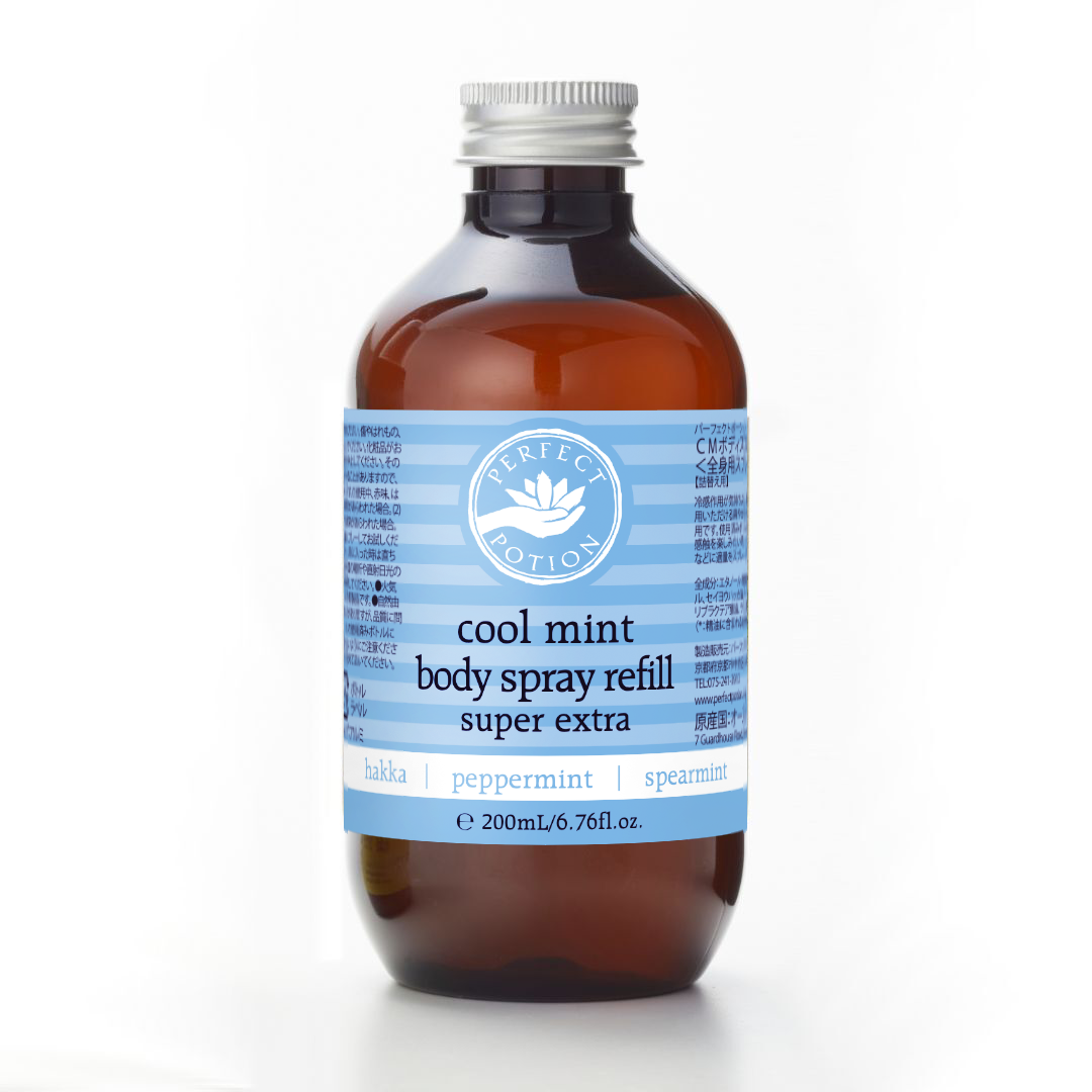 ハッカとペパーミント、スペアミントの3種のミントの爽やかなアロマが香る クールミントボディスプレー スーパーエクストラのリフィル(詰替え用ボトル)です。